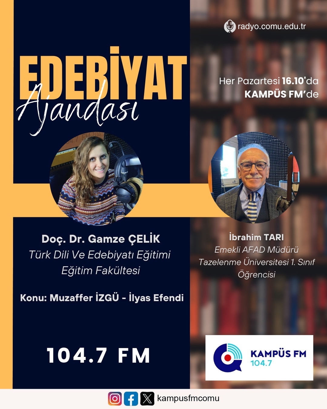 Emekli AFAD Müdürü İbrahim TARI Doç.Dr.Gamze ÇELİK Kampüs FM'de yayınlanan Edebiyat Ajandası adlı programına konuk oldu...